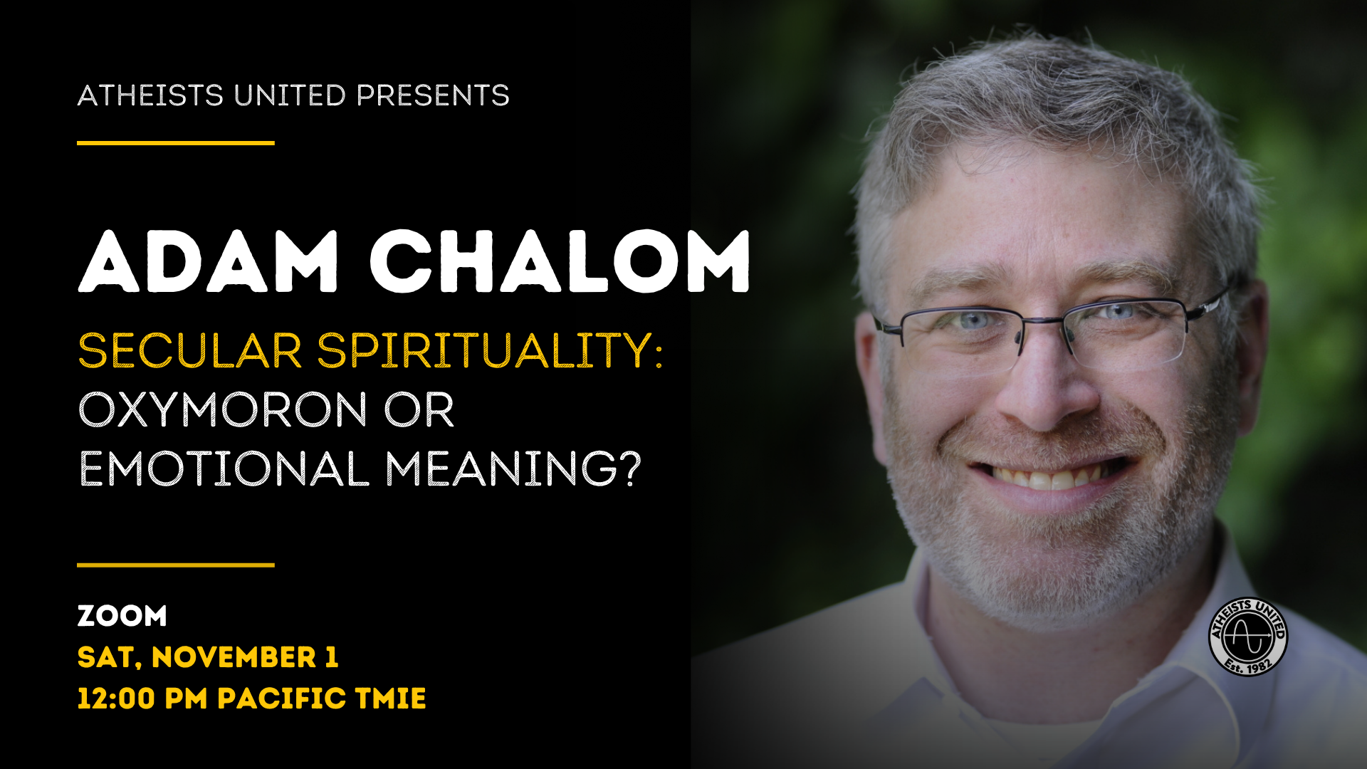 Event is FREE for Atheists United members, their guests, and anyone attending online (Must RSVP on Humanatix to get Zoom link)